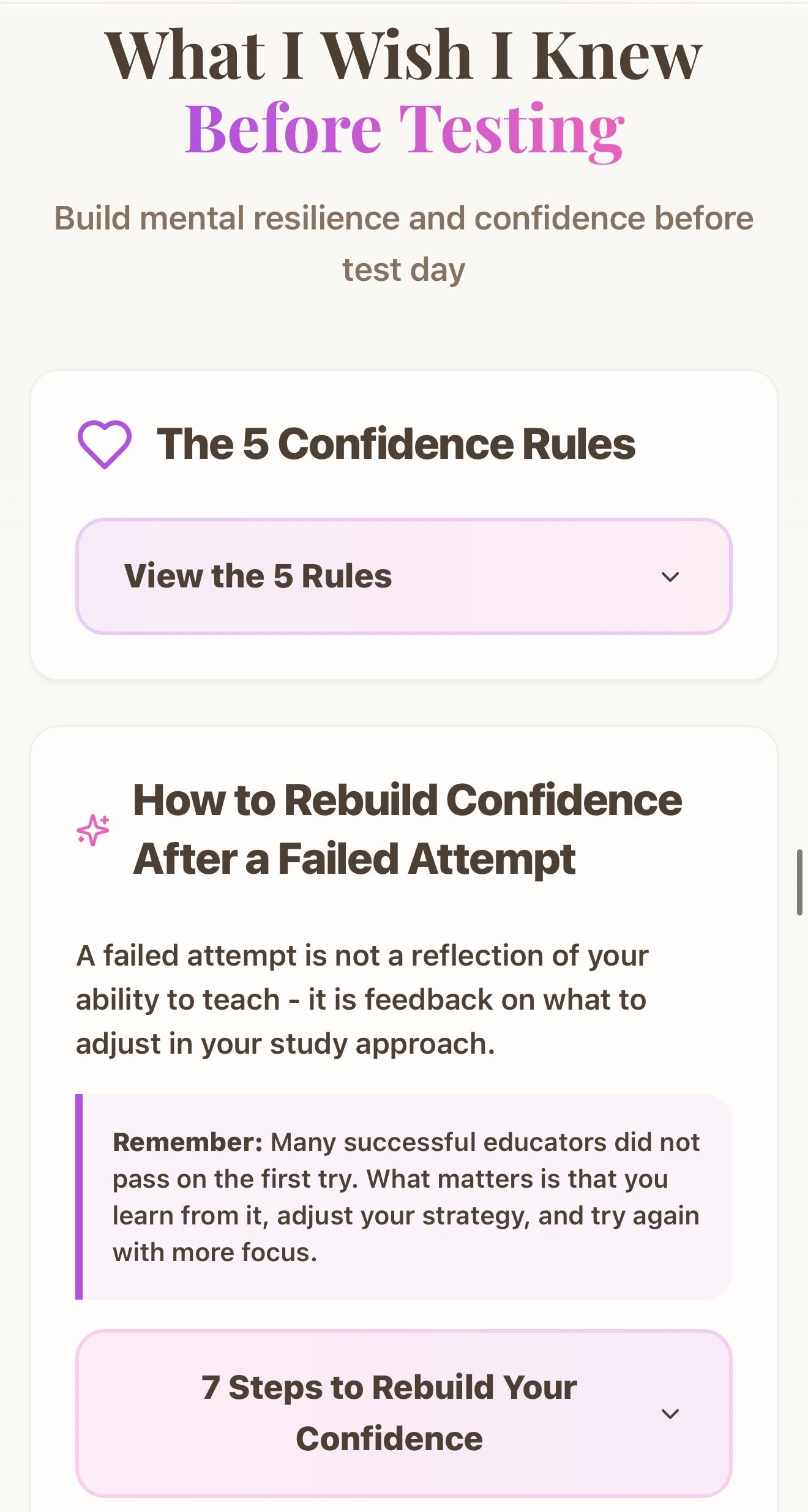 Inside the Blueprint, you will receive access to the Mindset Vault, which includes guided video trainings designed to help you regulate anxiety, rebuild belief after a failed attempt, and maintain emotional steadiness throughout your preparation.