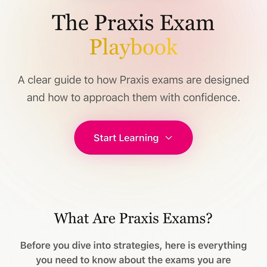 The Praxis Exam Playbook is a strategy guide for teachers preparing for Praxis exams who feel confident in the content but unsettled by the questions. It explains how Praxis exams are designed, how scenario-based questions are meant to be interpreted, and how to approach answer choices with intention instead of guesswork.